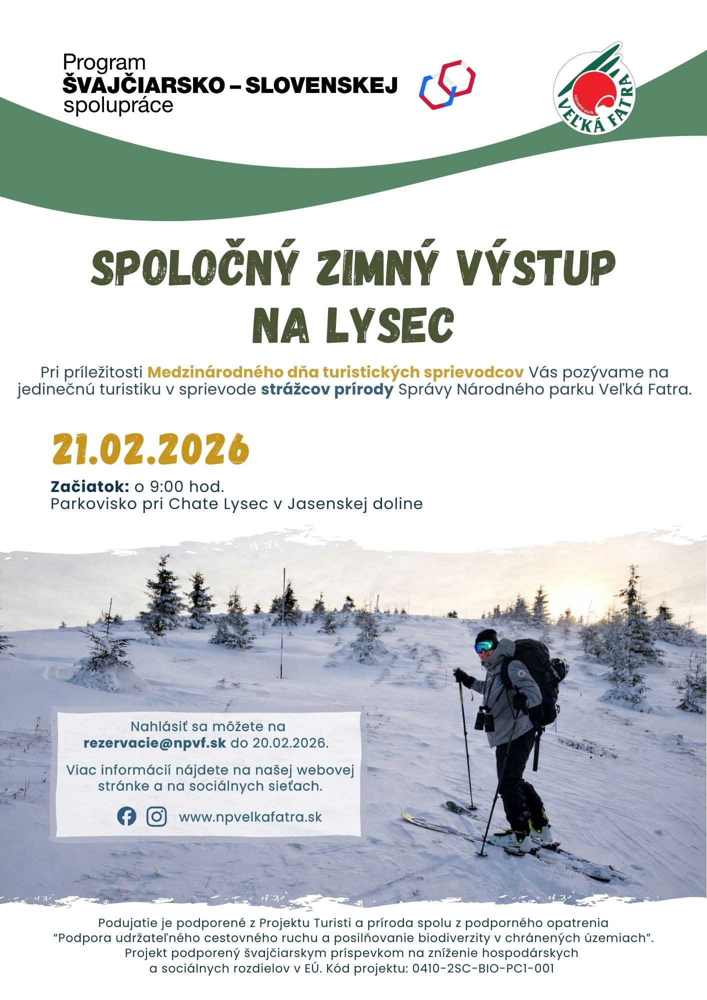 ℹ️ Podujatie je podporené projektom Turisti a príroda spolu v rámci opatrenia Podpora udržateľného cestovného ruchu a posilňovanie biodiverzity v chránených územiach. Projekt je podporený švajčiarskym príspevkom na zníženie hospodárskych a sociálnych rozdielov v EÚ. Kód projektu: 0410-2SC-BIO-PC1-001