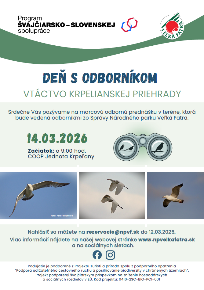 Podujatie je podporené z Projektu Turisti a príroda spolu z podporného opatrenia “Podpora udržateľného cestovného ruchu a posilňovanie biodiverzity v chránených územiach”. Projekt podporený švajčiarskym príspevkom na zníženie hospodárskych a sociálnych rozdielov v EÚ. Kód projektu: 0410-2SC-BIO-PC1-001